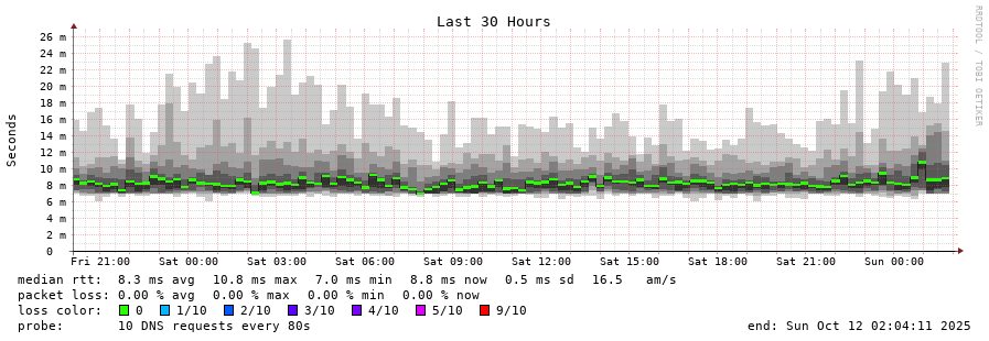 traceroute to 8.8.8.8 (8.8.8.8), 30 hops max, 60 byte packets - Generated at 2025-10-11 23:45:01