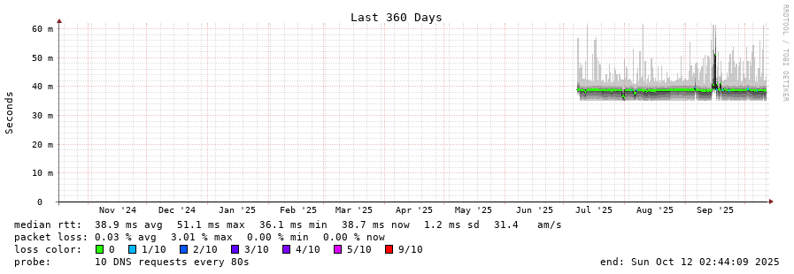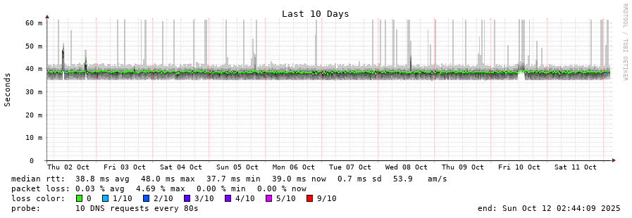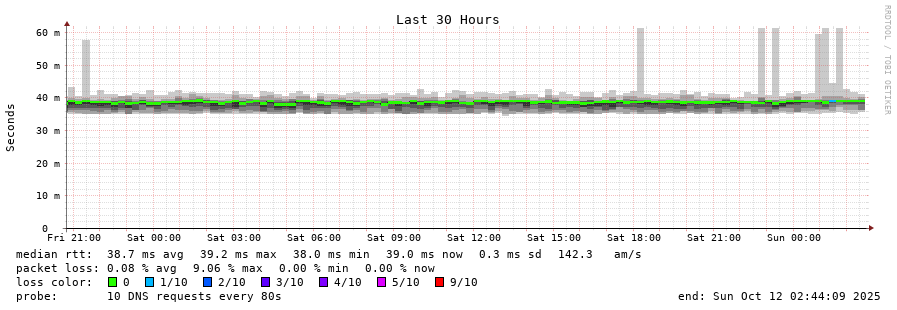 traceroute to 2001:7fe::53 (2001:7fe::53), 30 hops max, 80 byte packets - Generated at 2025-10-12 02:30:01