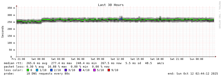 13 > 2001:7fa:7:1::7500:1 (2001:7fa:7:1::7500:1) [*] 285.432ms 285.471ms 285.472ms