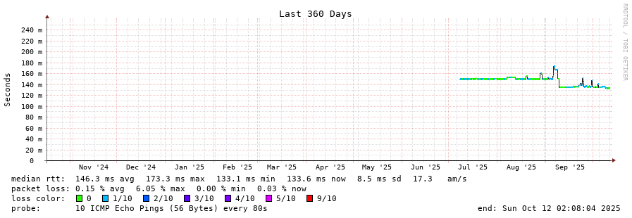 10 > 125.214.191.37 (125.214.191.37) [AS18001] 134.957ms 134.969ms 134.969ms