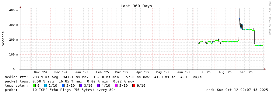 11 > 80.231.236.93 (80.231.236.93) [AS6453] 143.063ms 142.568ms 142.855ms