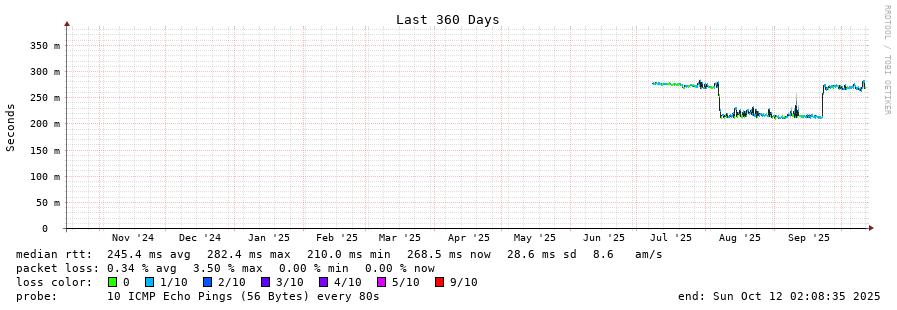 9 > if-ae-11-2.tcore1.wv6-madrid.as6453.net (80.231.91.65) [AS6453] 255.124ms 255.137ms 255.940ms