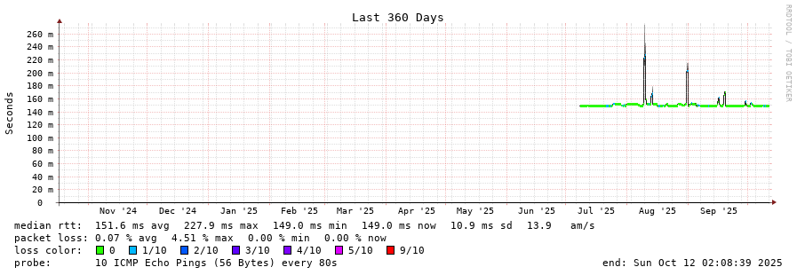traceroute to 185.179.200.53 (185.179.200.53), 30 hops max, 60 byte packets - Generated at 2025-10-12 00:00:01
