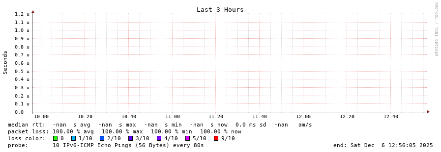 traceroute to fd78:93ae:fdfe::2 (fd78:93ae:fdfe::2), 30 hops max, 80 byte packets - Generated at 2025-12-06 12:45:01 3 > 4 > 5 > 6 > 7 > 8 > 9 > 10 > 11 > 12 > 13 > 14 > 15 > 16 > 17 > 18 > 19 > 20 > 21 > 22 > 23 > 24 > 25 > 26 > 27 > 28 > 29 > 30 >