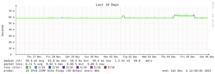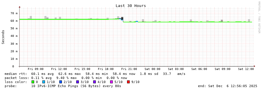 traceroute to 2001:b68:d:0:ee08:6bff:fe73:2da0 (2001:b68:d:0:ee08:6bff:fe73:2da0), 30 hops max, 80 byte packets - Generated at 2025-12-06 12:45:01