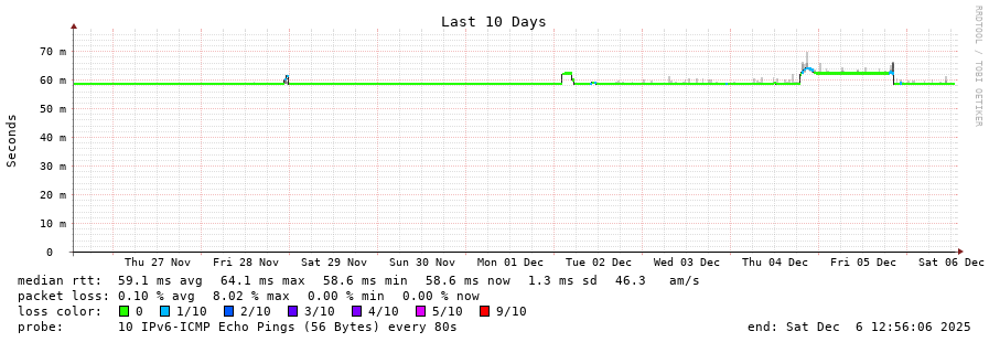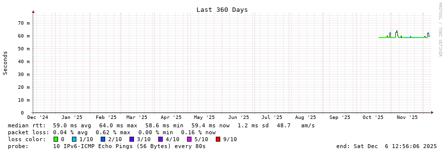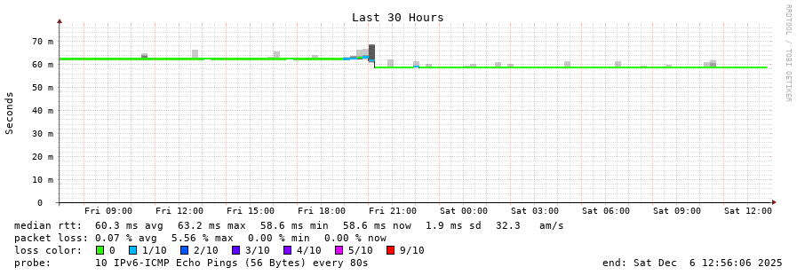 traceroute to 2001:b68:d::28 (2001:b68:d::28), 30 hops max, 80 byte packets - Generated at 2025-12-06 12:45:01