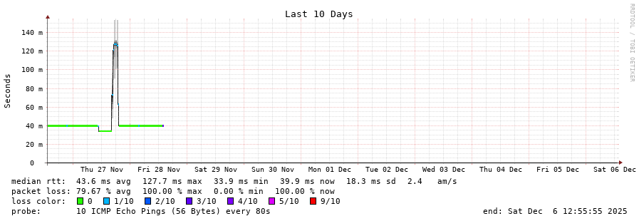 traceroute to 44.32.77.3 (44.32.77.3), 30 hops max, 60 byte packets - Generated at 2025-12-06 12:45:01