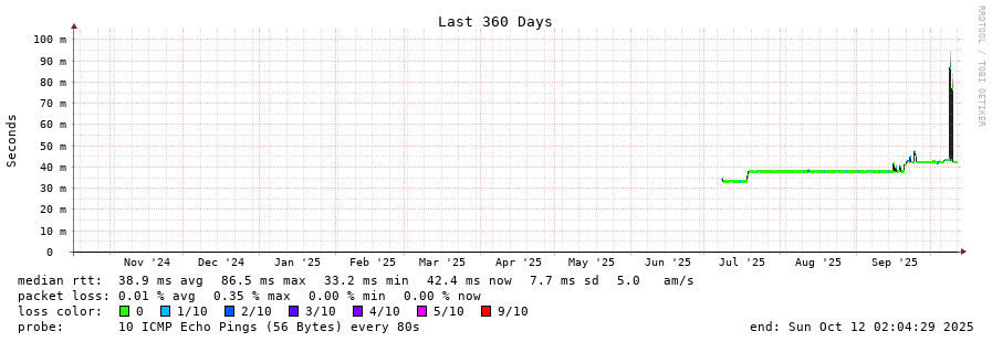 traceroute to 185.125.25.57 (185.125.25.57), 30 hops max, 60 byte packets - Generated at 2025-10-11 23:30:02