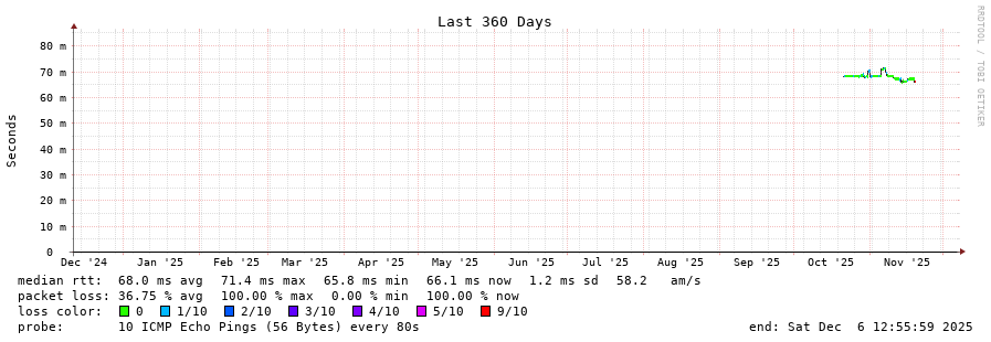 traceroute to 85.114.53.205 (85.114.53.205), 30 hops max, 60 byte packets - Generated at 2025-12-06 12:45:01
