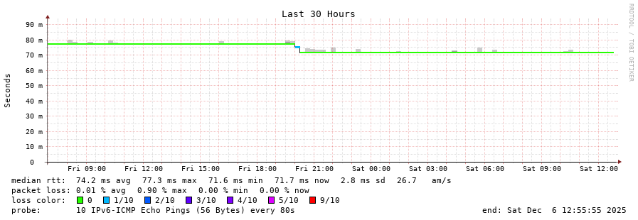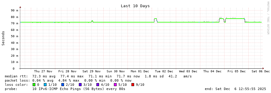 traceroute to 2a0c:ca80::41 (2a0c:ca80::41), 30 hops max, 80 byte packets - Generated at 2025-12-06 12:45:01