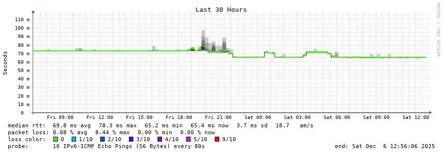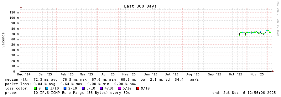 traceroute to 2a0b:2f00:0:234::151 (2a0b:2f00:0:234::151), 30 hops max, 80 byte packets - Generated at 2025-12-06 12:45:01