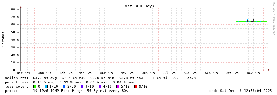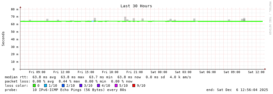 traceroute to 2a03:8f84::f1b6:9702:29c:9062 (2a03:8f84::f1b6:9702:29c:9062), 30 hops max, 80 byte packets - Generated at 2025-12-06 12:45:01