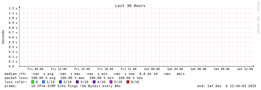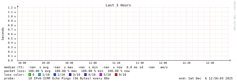 traceroute to fd9b:f75:a3d5::2 (fd9b:f75:a3d5::2), 30 hops max, 80 byte packets - Generated at 2025-12-06 12:45:01 3 > 4 > 5 > 6 > 7 > 8 > 9 > 10 > 11 > 12 > 13 > 14 > 15 > 16 > 17 > 18 > 19 > 20 > 21 > 22 > 23 > 24 > 25 > 26 > 27 > 28 > 29 > 30 >