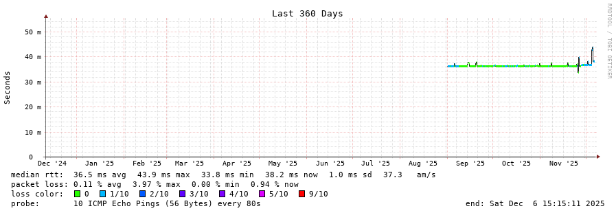 traceroute to proof.ovh.net (141.95.207.211), 30 hops max, 60 byte packets - Generated at 2025-12-06 15:00:01