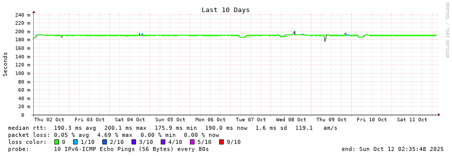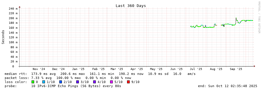 traceroute to 2604:2dc0:202:200::1f9 (2604:2dc0:202:200::1f9), 30 hops max, 80 byte packets - Generated at 2025-10-12 02:30:01
