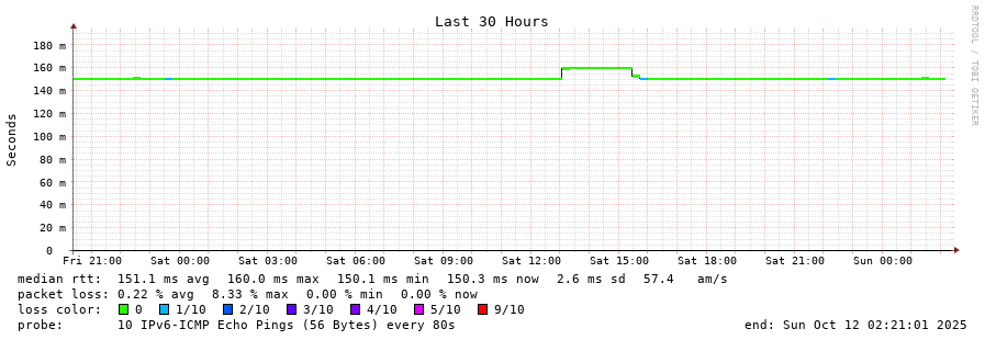 traceroute to 2604:2dc0:306::2:0:9a (2604:2dc0:306::2:0:9a), 30 hops max, 80 byte packets - Generated at 2025-10-12 02:15:01