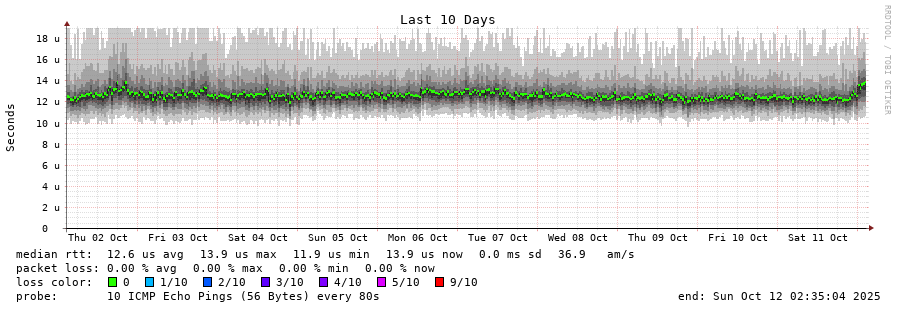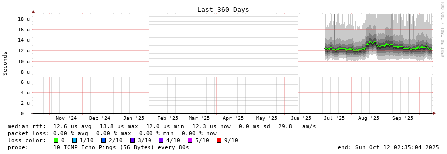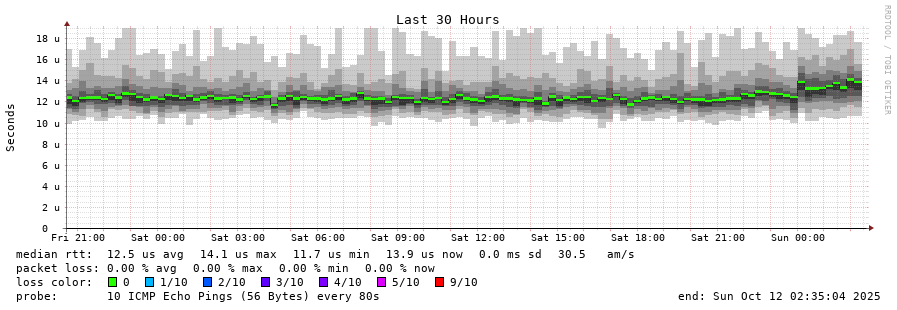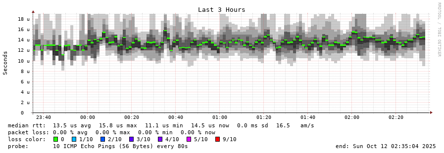 traceroute to 141.227.176.224 (141.227.176.224), 30 hops max, 60 byte packets - Generated at 2025-10-12 02:30:01 3 > 141.227.176.224 (141.227.176.224) [AS16276] 0.015ms 0.009ms 0.005ms