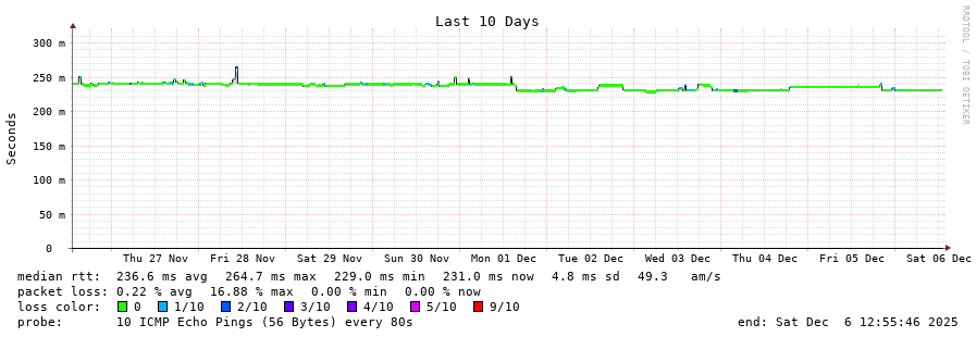 12 > 200.25.56.95 (200.25.56.95) [AS7195] 227.195ms 227.252ms 227.225ms