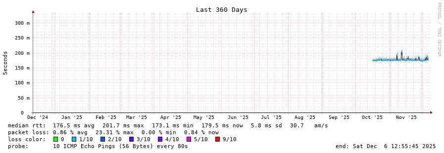 11 > 138.0.41.59 (138.0.41.59) [AS52320] 162.421ms 162.500ms 162.557ms