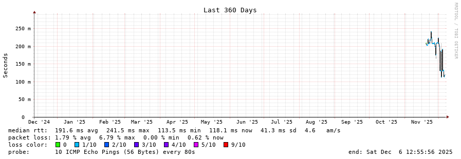 traceroute to 179.0.161.81 (179.0.161.81), 30 hops max, 60 byte packets - Generated at 2025-12-06 12:45:01