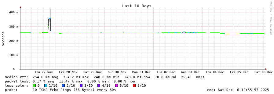 13 > 200.25.57.255 (200.25.57.255) [AS7195] 226.609ms 226.753ms 226.294ms