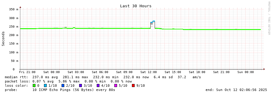 6 > 195.22.222.13 (195.22.222.13) [AS6762] 226.753ms 226.643ms 226.627ms
