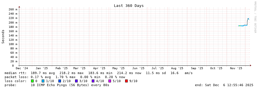 11 > globenet.ftlza.br.as52320.net (200.16.69.3) [AS52320] 168.985ms 169.252ms 169.065ms