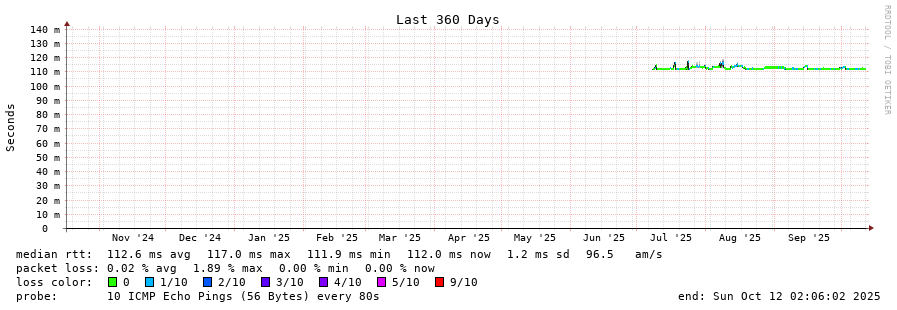 15 > 67.69.37.174 (67.69.37.174) [AS577] 111.556ms 111.533ms 111.671ms