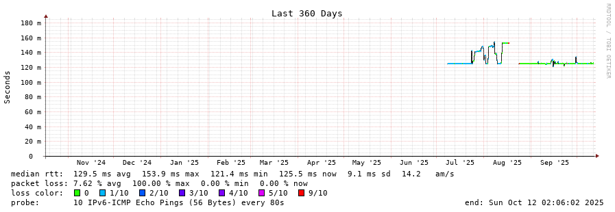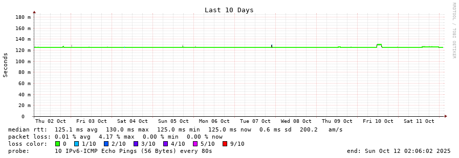 traceroute to 2602:feda:b8e:10::1 (2602:feda:b8e:10::1), 30 hops max, 80 byte packets - Generated at 2025-10-11 23:30:02