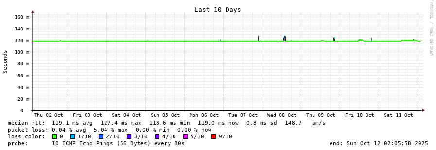 15 > 64.230.91.19 (64.230.91.19) [AS577] 119.425ms 118.727ms 119.491ms