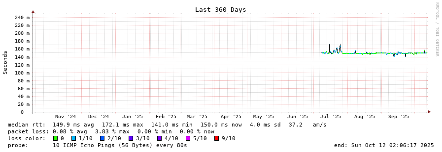 15 > 12.245.94.254 (12.245.94.254) [AS7018] 149.658ms 149.562ms 149.596ms